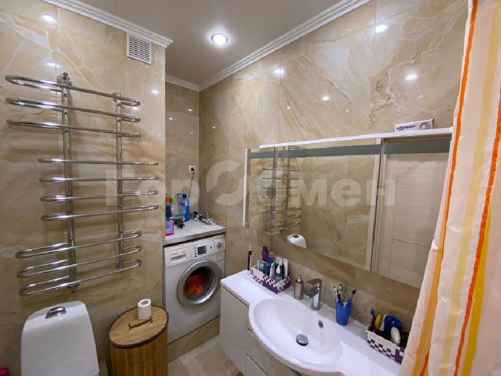 О квартире: современный ремонт с интересными дизайнерскими решениями. Изолированные спальни, просторная кухня гостиная с обустроенной и присоединенной лоджией, два санузла и вместительные гардеробы.